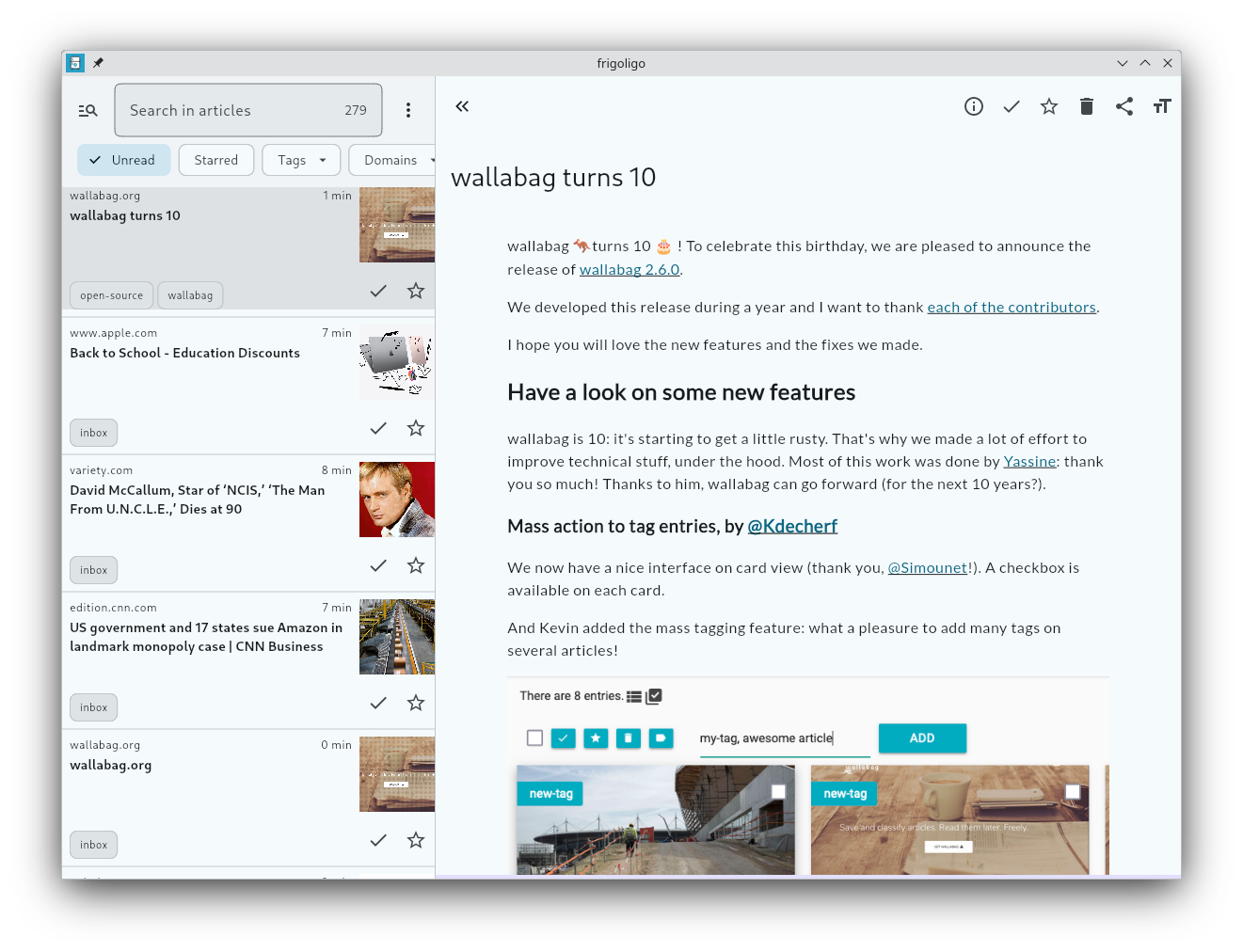 Frigoligo is a wallabag client crafted using Flutter